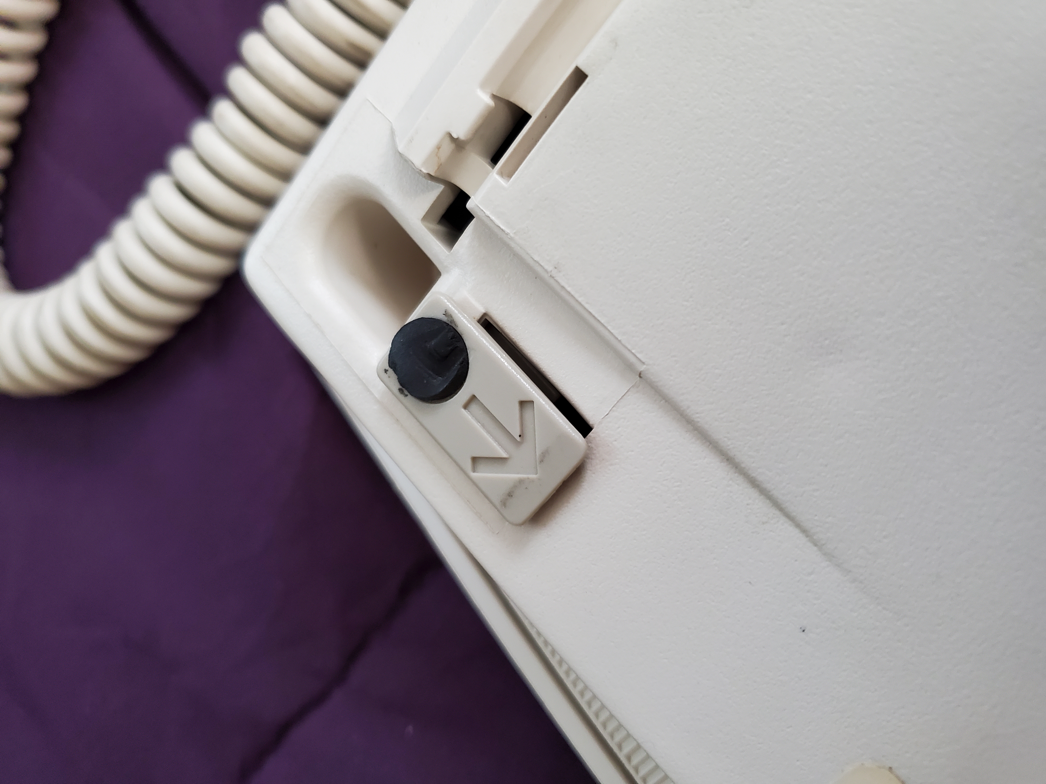 - This shows the foot to add tilt to the keyboard. It is not yet extended.
